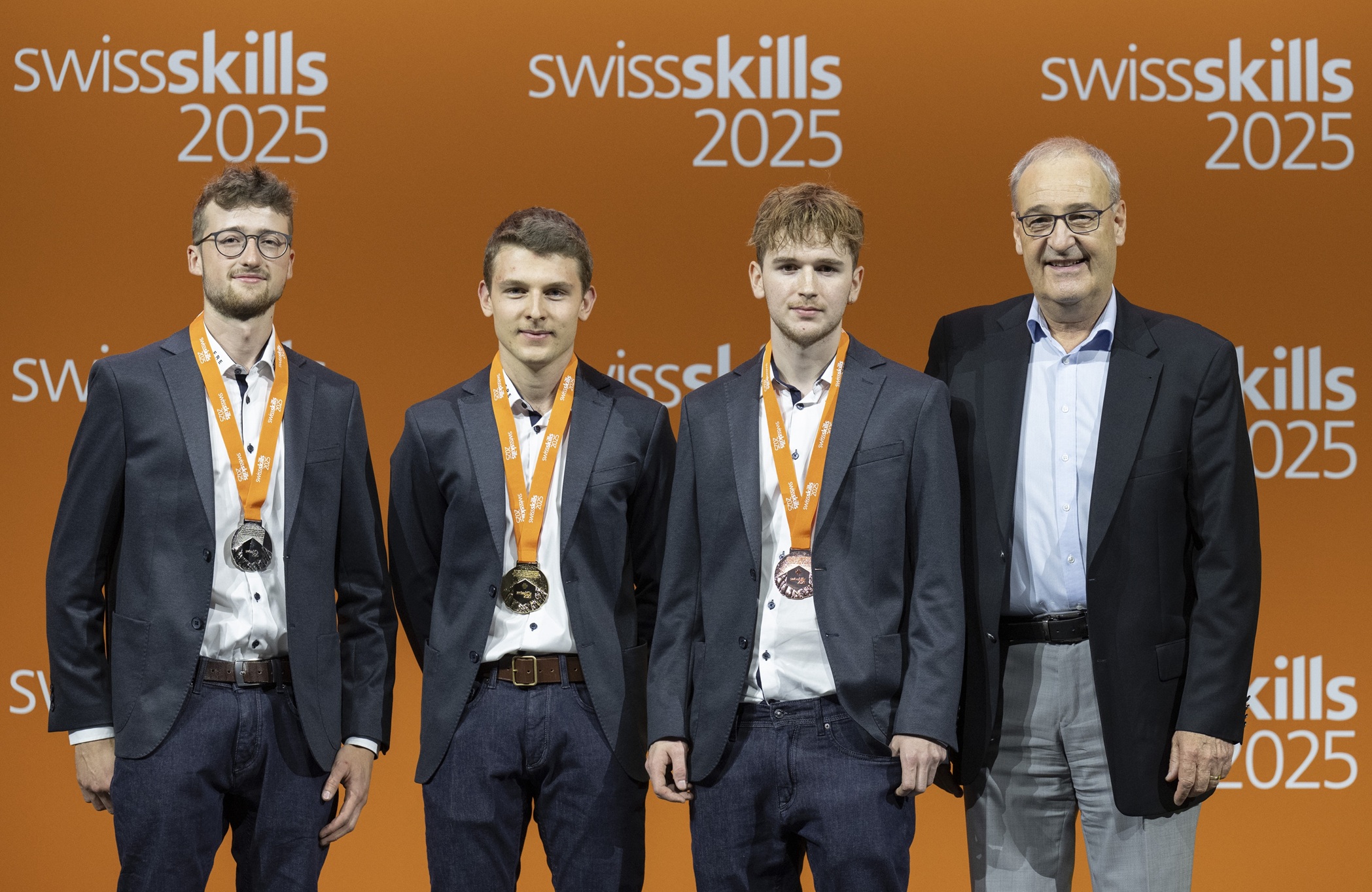 Bild, von Links nach Rechts: Bundesrat  Guy Parmelin, Florian Muri, Elmar Wyrsch, Loïc Santschi